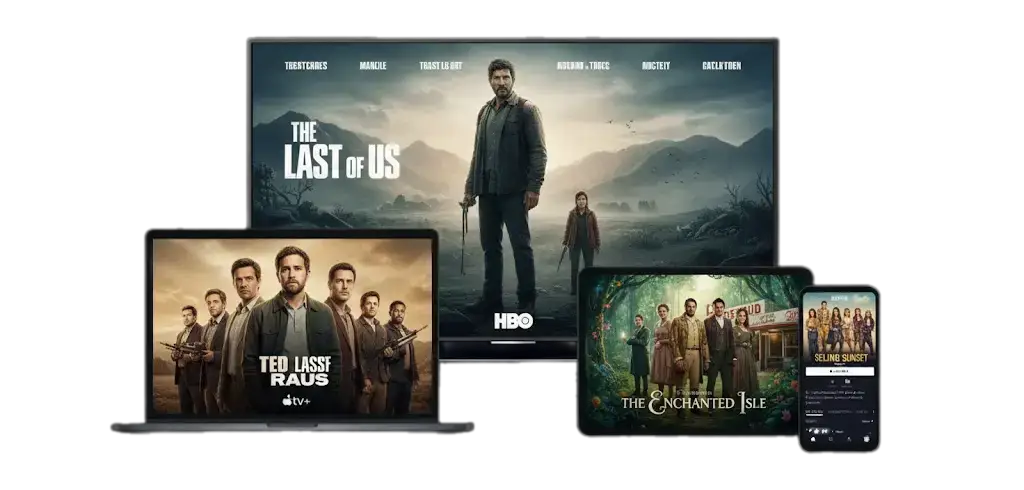 Stream seamlessly on Smart TVs, phones, tablets, and streaming devices — at home or on the go.