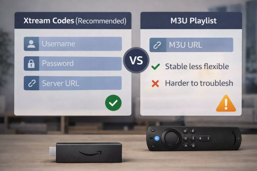 When choosing the best IPTV for Firestick, you’ll usually see two login methods: